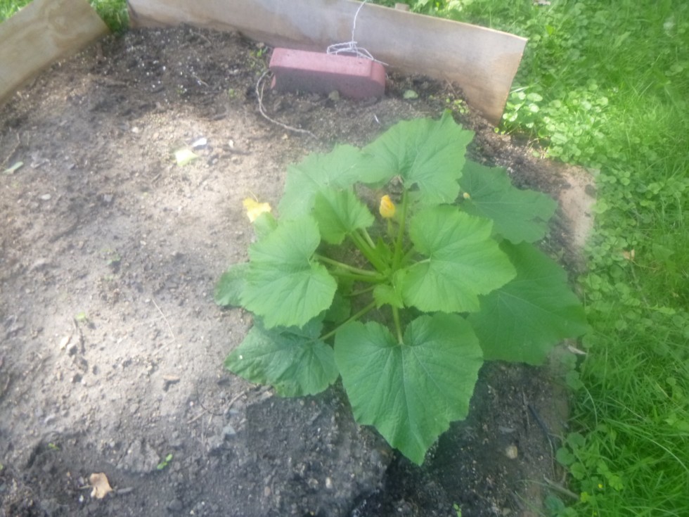 Rebel Zucchini plant. First male flower bloomed.