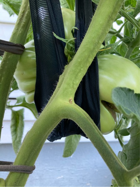 Big wixom day 26, 22 inches around 4 lbs . Has a slow spreading area of Ber , but going to take it the distance anyway , just for my pride . Likely to be my biggest for the season and a new pb for me ! I grew a 4 lbs mater in 2008 of a cross I made between my Canadian and delicious !