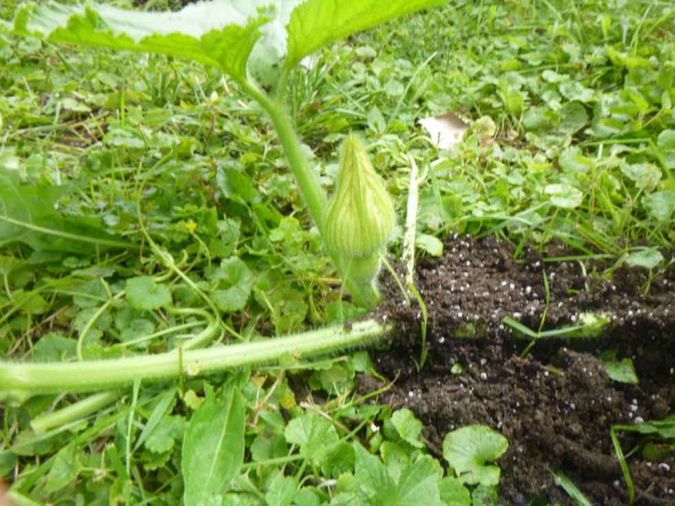 Finally a female blossom on the 513 Weibel squash plant. We;re finally going green on this plant. 4 previous female flowers aborted when the pumpkin on the flower turned yellow and the flower never opened. I think the plant is saying this is the one because I cut 5 female flowers from the plant and left 3 on the plant.