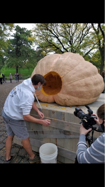 Getting the seeds out of Steve sperrys pumpkin! 2021.5 pounds.