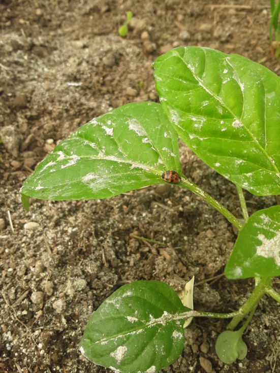 I had some aphids on the peppers, part of the reason why I figured theyd do better outside. Sure enough, an aphid patrol lady has already showed up.