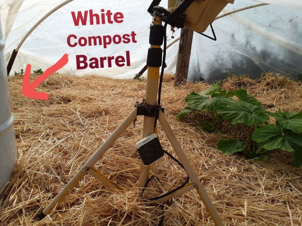 It was 95 in the hoophouse after only 20 minutes of sun... 9:30 am. I think decomposing compost is helping to boost the temps. This is the first time I tried this style of hoophouse. Its great! Although I sorta planted the plants in the wrong spot where they may run out of room. But at least its warming up a large area for the roots.