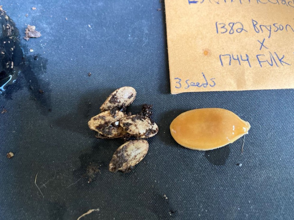 Came home and started germinated them, underwhelmed by their size and coloration. Sowed them anyways, but then remembered that I had saved those seeds from 8 years ago still!! Excitement growing, I sanded the edges down, soaked, and into the quart pots they went.