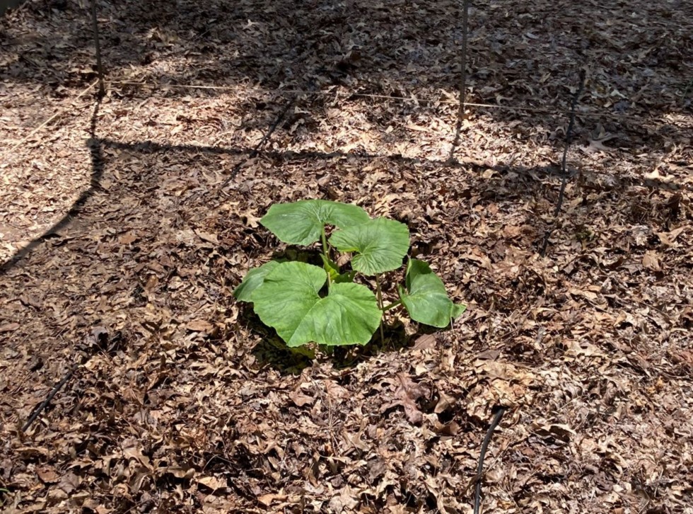 We had 4 inches of rain over the past 4 days. The vine did very good with the skewers holding things down. I watered the vine deeply with freshly brewed compost tea; now to let her stretch!