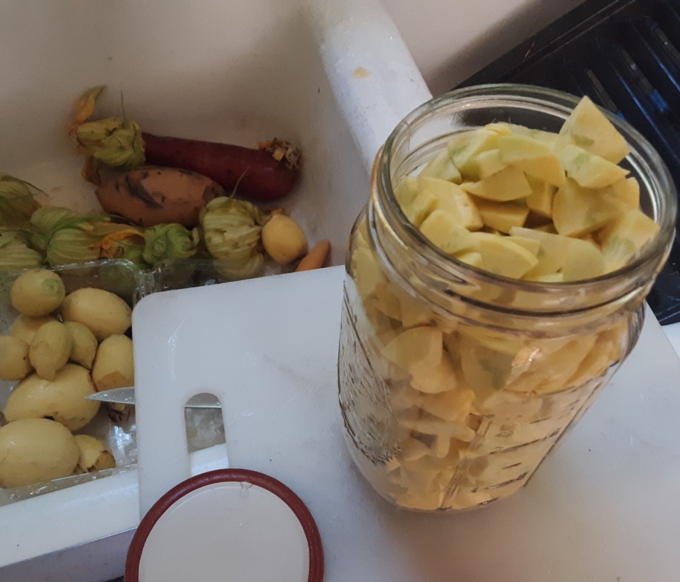 About a days worth of culls in the 1-3 DAP range. Good in soup or fried, they do lose a bit the firm texture when frozen, still healthy though.