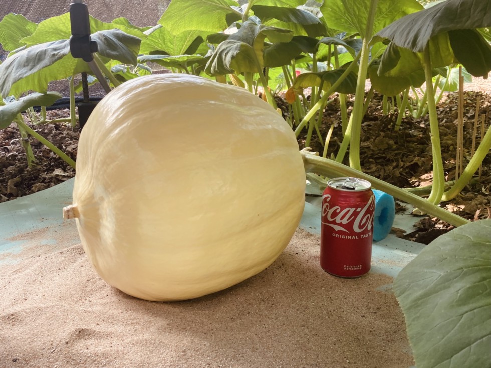 Things are so hot and dry : I am watering every day. First day is 1.5 hrs (1�) from the overhead oscillation sprayer, second day is 1 hour from the drip irrigation. The sandy silty loam dries out very fast from the thirsty vine.