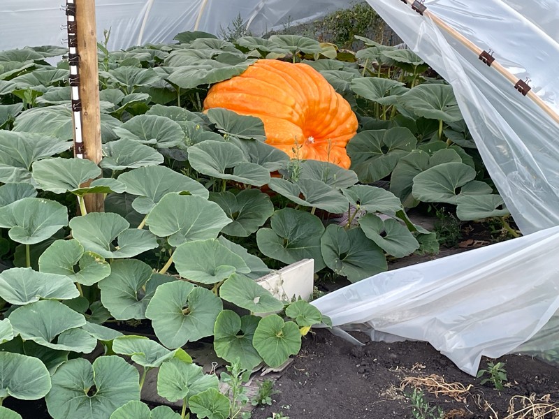 I think if I�d have actually grown this one properly it could break 1000 lbs. it was the orange 1002 Veitch crossed with 1597 Hunt so there is definitely good big genes. Now it has the 2365 Wolf mixed in. Who knows what that will do�