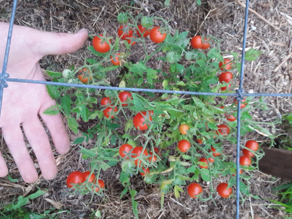 This little plant had more ripe tomatoes than any of the more normal sized plants in the row. 44 tomatoes. Not going to beat Salad Doug anytime soon, but I might save the seed for use as my own mini patio heirloom.