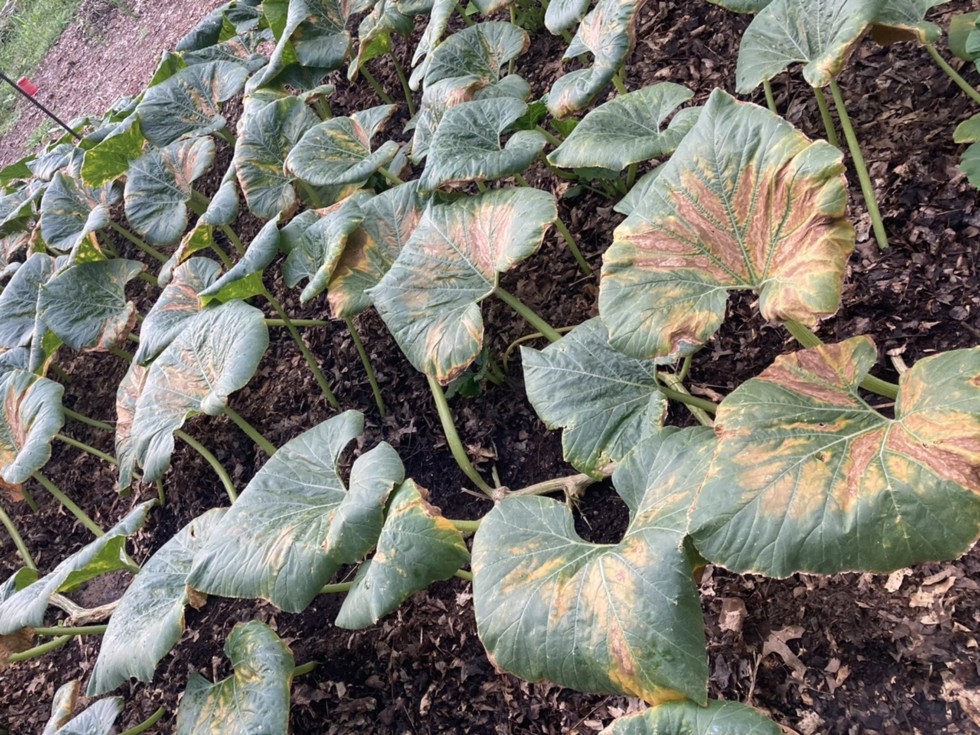 Lots of vine damage due to excess fertilizing. The �more is better� mentality is hard to surpress, especially when you rushing yourself into a decisionand act on it. This was from my initial hand broadcast feeding when the bag arrived; I applied way too much.