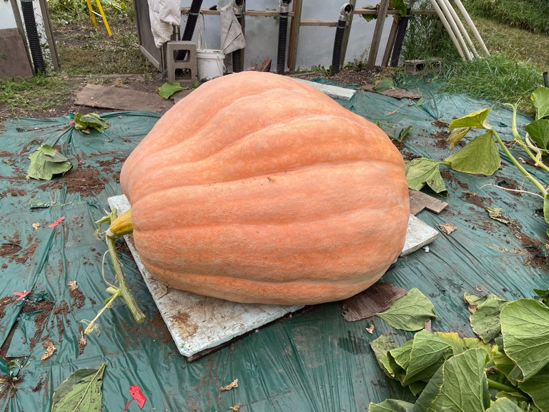 Sound Fruit. Took it to Smoky Lake and confirmed the 1141 lb weight, although they left the harness on. There was another fruit getting some attention and time. This one was pollinated by the 2365 Wolf.