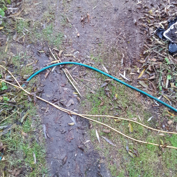 Worms buried a couple extension cords, only visible still where they cross the concrete. It takes them about 1 year to bury a cord halfway and a 2nd year for it to disappear into the ground completely.