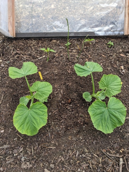 All AG plants are in the ground. Here are 2045 Mehdi on the left and 2006 Wolf on the right. Some animal managed to get into one of my huts and dig up my backup 2006 Wolf but I still have a backup 2045 Mehdi so it looks like I will still be able to grow both of these awesome seeds.