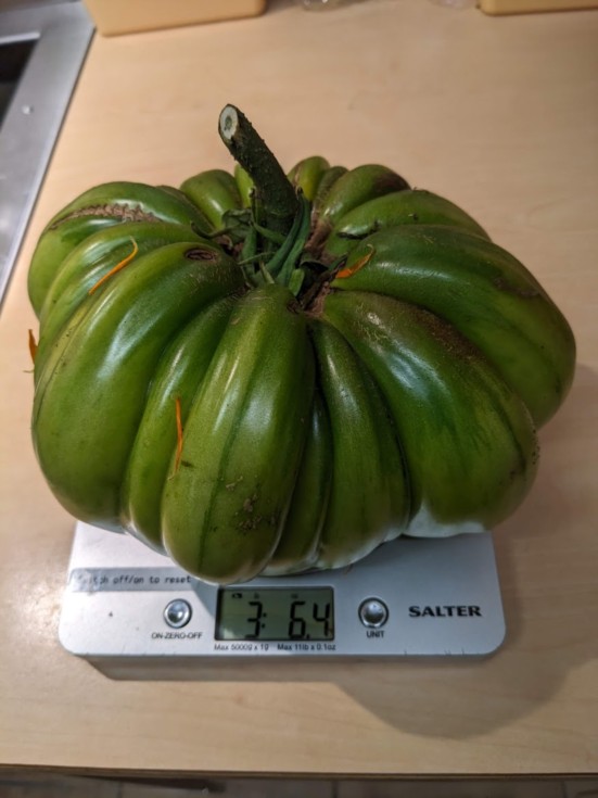3.4 lb Domingo tomato off of seeds I saved last year.