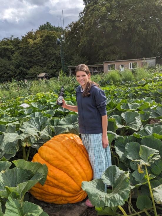 My daughter's 150 sq. ft. pumpkin is not exactly impressive size wise and has never really taken off, but the color is still amazing.