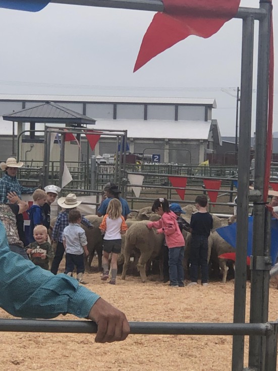 Mutton busting first to herd sheep to shoots everyone did this and everyone suited up, Luke chose pony ride instead, Fred danced and motivated crowd with running up and down front of stands, Susan made call back with score of 84 only girl to make call back girl can ride all the kids can guess dad needs to get them a horse.