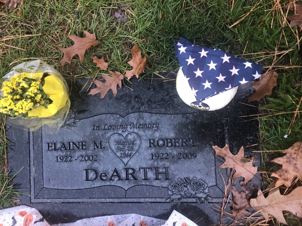 Miss my gma Elaine and gpa bob. The flags in honor of gpas service happy veterans day, pic taken on All Souls� Day the picture on white pumpkin goes with that