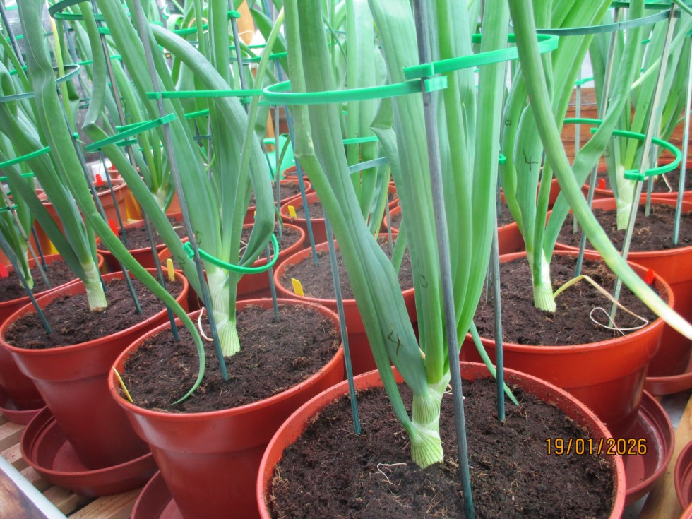 Potted on 20 more Onions into 9 inch pots in coir. Heated enclosure in my greenhouse almost full.