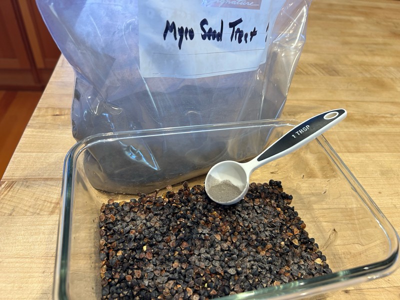 I inoculated new buckwheat seed with Mycos Seed Treat. I did not inoculate before, so I hope this will help make more roots. It does seem like a good way to get my beneficials going before my plants.