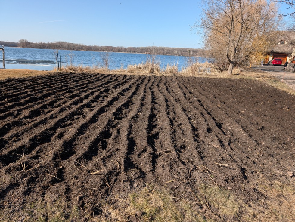 Beautiful day with a high near 70 today. Tomorrow should be nearly as nice before we cool down to more seasonal temperatures. Got two tills done on the patch and the radishes are mostly obliterated. Will give them a bit more time to break down this week and pull a soil sample. Lake is nearly iced out. It's been fairly dry lately, hope that leads to a strong start to the year.
