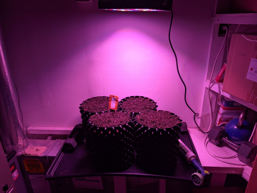 2144 went in the red marked air pot plus gets it's flag. Have a few mater seeds including the 7.1 Faust that I also started and have put under the grow light now that it is on. Hope to have one giant mater in the eating garden.