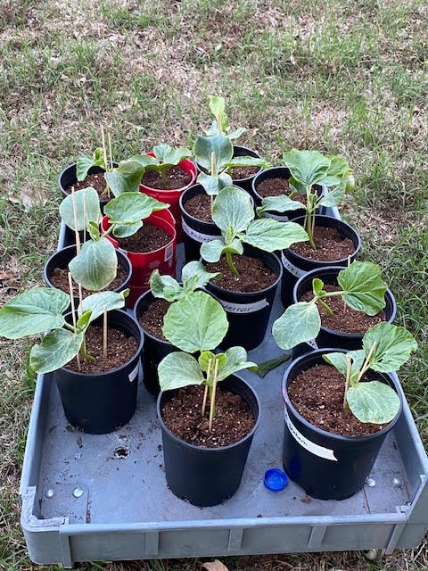 I need some advice on wind fence, I am going to use 3' silt fence for the first couple weeks close to the plants. Not sure if that is high enough for the perimeter of the patch, would appreciate advice. Salvaged a old push cart drilled some water relief holes and she worked perfect for moving in and out Mon,Tues.The plants have been out hardening around the clock for two days.They should be ready for soil this weekend. 80 degree days 60 nights no hoops or heating cable in Arkansas. Plants are 13 days from soaking seed.