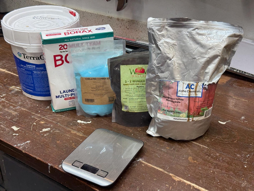 Final patch prep work this weekend. All amendments added, and one final till to mix it all in. Micronutrients added after the soil analysis were: 2.2 oz Chelated copper 1.5 lbs Borax 3.5 oz Manganese Sulfate