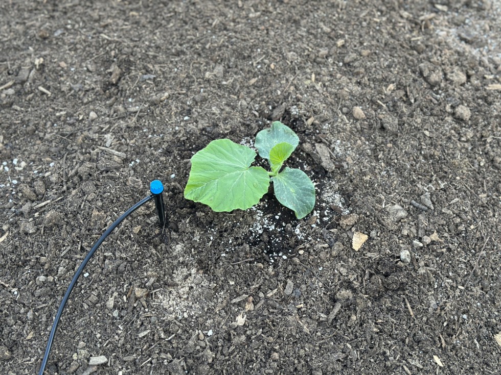 2424 Caspers made its way to the patch. Now we need some rain. Chance of frost this weekend, and then I'll take the cover off and use the frame for shade.