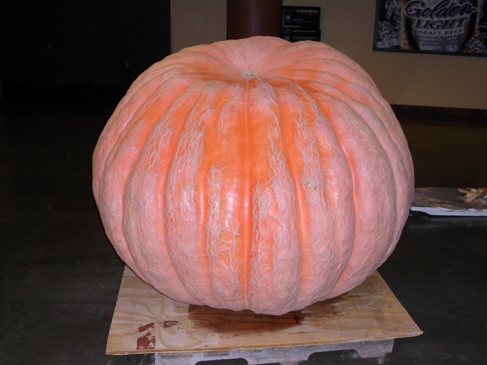 1290 again, and this picture is the front. Giant Pumpkin always look much better when they are propped upright like a Jack-O-Lantern pumpkin.